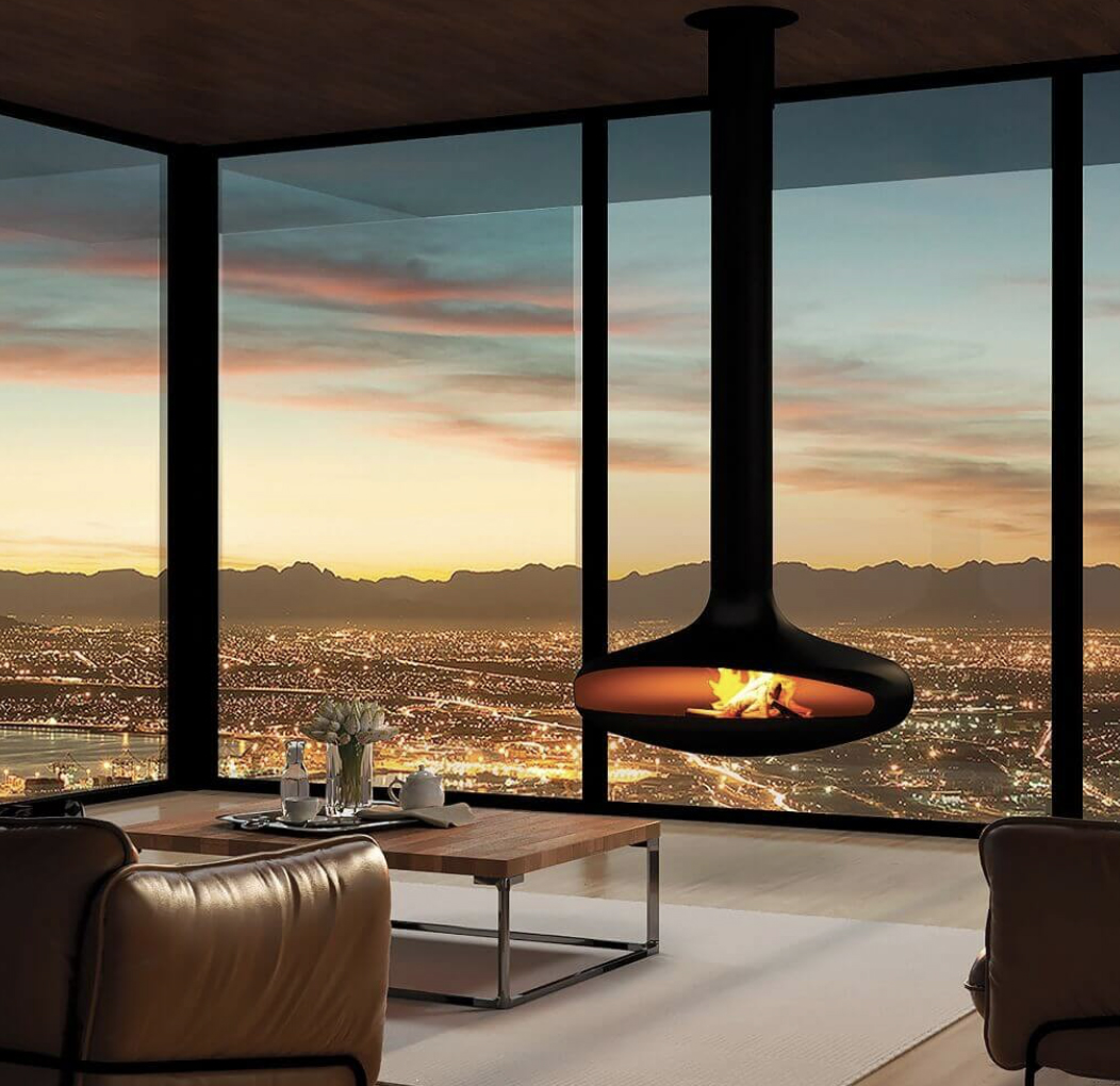 The Aero commands a presence wherever it is installed, effortlessly integrating with its surroundings. The Aero hanging fireplace floats in mid-air and can rotate 360 degrees allowing a view of the beautiful flames from any position in the room.