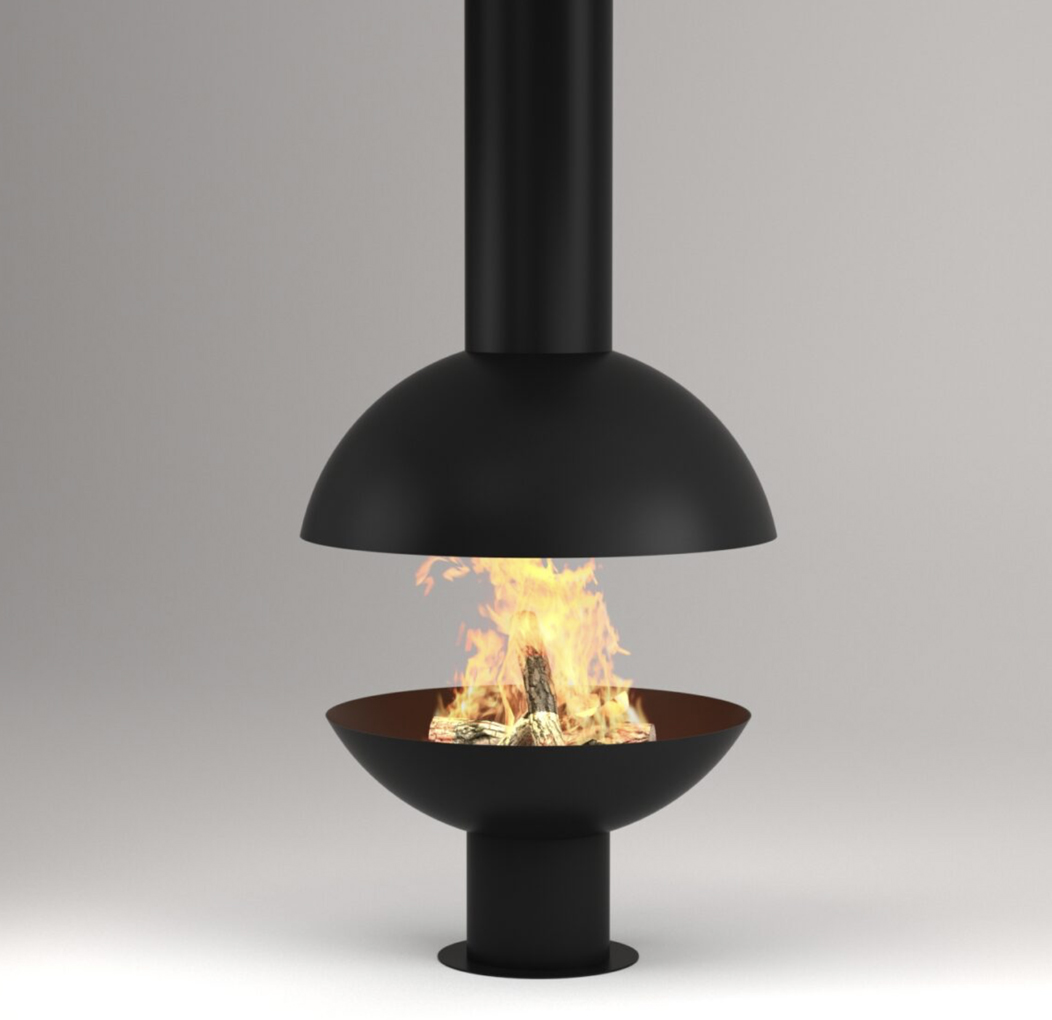The Ball Suspended Fireplace is an open hearth-suspended fireplace. The top sphere of the fireplace is suspended with the foot piece standing on the floor. The base of the fireplace has a hidden ashtray for easy cleaning. The standard model includes flue pipes up to 3 meters and can be customized for specific installations that require higher suspension. Each fireplace is individually hand-crafted and unique. The Ball suspended fireplace is a favourite for bush lodges and other hospitality installations.